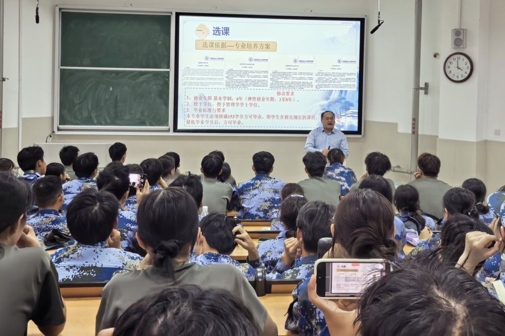 大学生活是全新的开始,通过调研发现学生对于如何开展大学生活充满迷茫,基于问题导向,学院邀请相关工作负责老师精心准备了新生入门课程,帮助学生快速融入大学生活。学校党委学生工作部(处)心理指导中心李可心老师以“从‘心’开始的大学生活——大学生心理适应第一课”为主题,为新生们带来了一堂生动的心理适应课程。学院教学管理办公室庞立夫老师从学生培养方案入手,详细介绍了学生选课、四六级考试、成绩管理、学籍变动等具体流程和注意事项,帮助新生全面了解学业运行机制。学生工作办公室苏一平老师详细介绍了大学生入党流程、入党申请书的撰写规范以及党员的责任与使命,鼓励新生积极向党组织靠拢,将个人理想融入国家发展。学生工作办公室贾先岩老师系统介绍了“挑战杯”“国创赛”、数学建模等与专业紧密相关的高水平竞赛,分析了参赛流程、备赛要点与奖励机制,鼓励同学们早日走进实验室,接触前沿课题,培养科研兴趣。