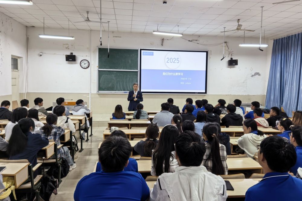 学院高度重视新生的思想政治引领工作。在理想信念教育专题中,学院党委书记王勇为全体新生带来了“开学第一课”。围绕“为什么上大学”这一核心问题从历史启示、大学意义、成就方式三个方面展开阐述。他结合济南大学的发展历程与办学特色,详细介绍了学校的资源优势与平台优势,生动的案例和殷切的期望,在新生心中播下了为强国建设贡献青春力量的种子。学校新生入学教育讲师团成员、党委巡察办专职巡察员于文以“我们为什么要学习”为主题,从中外学习的差异性进行对比,阐述了当代大学生所肩负的时代责任与历史使命,鼓励同学们将个人理想融入国家发展大局,树立远大志向,锤炼过硬本领,争做有理想、敢担当、能吃苦、肯奋斗的新时代青年。