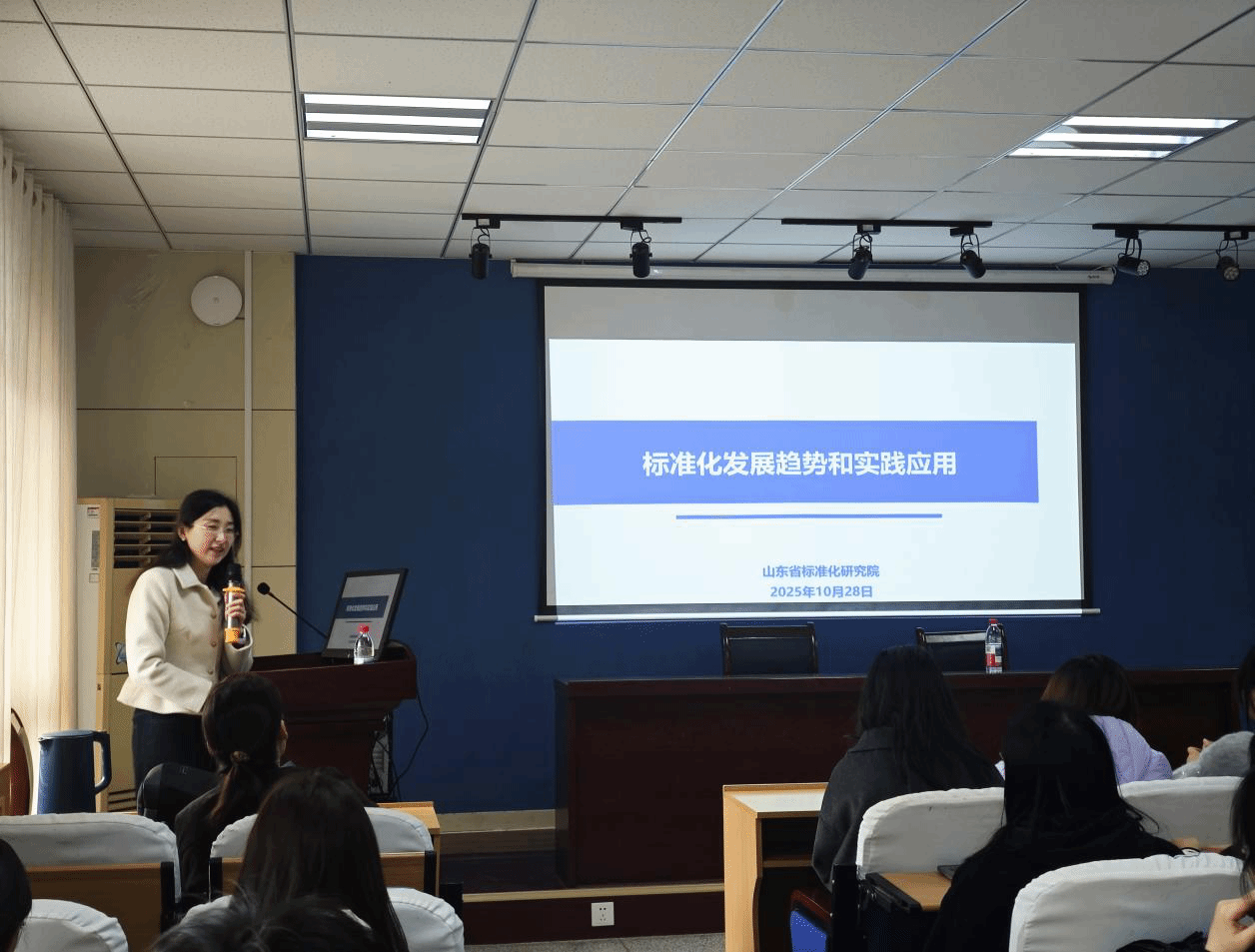 为深化标准化工程专业学生对专业领域的认知,助力其把握行业发展新脉搏、提升理论结合实践能力,济南大学管理科学与工程学院于 2025 年 10 月 28 日特别邀请山东省标准化研究院乡村振兴标准化研究所所长李倩博士,开展专题讲座,讲座由系主任代婷老师主持。李倩博士围绕标准化主题,从发展趋势、政策导向及应用实践案例等维度,全面解读标准化在国家发展、社会生活及各行业中的重要价值与实践路径,为在场师生带来一场兼具专业性与实用性的知识盛宴。