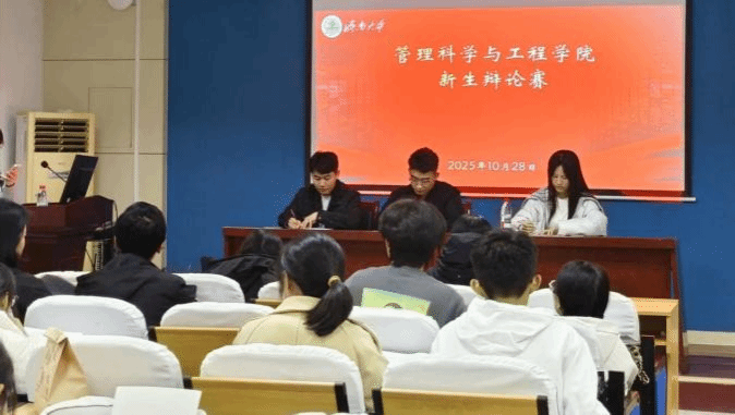 近日,济南大学管理科学与工程学院2025级"思辨青春·语你同行"新生辩论赛在舜耕校区经管楼308室圆满落幕。本次比赛以思想交锋为内核、语言竞技为载体,旨在锻炼学生的逻辑思维、语言表达与团队协作能力,为新生提供展示才华的舞台。