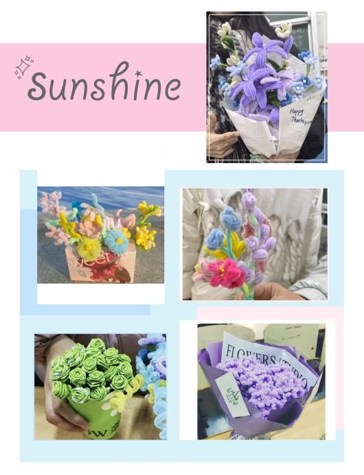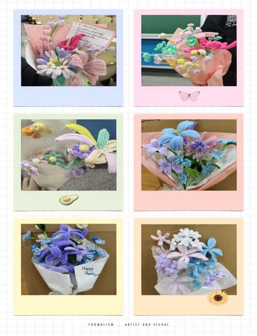 从扭扭棒创意塑形到废旧材料二次利用,每一步骤都凝聚着同学们的巧思与诚意,一束束造型别致、内涵丰富的花束相继成型。活动中,同学们在亲手创作中锤炼审美感知力,在同伴互动中深化情感联结。不少同学表示,将亲手制作的花束赠予自己或他人,既是对生活之美的具象表达,更是积极情绪的有效传递。