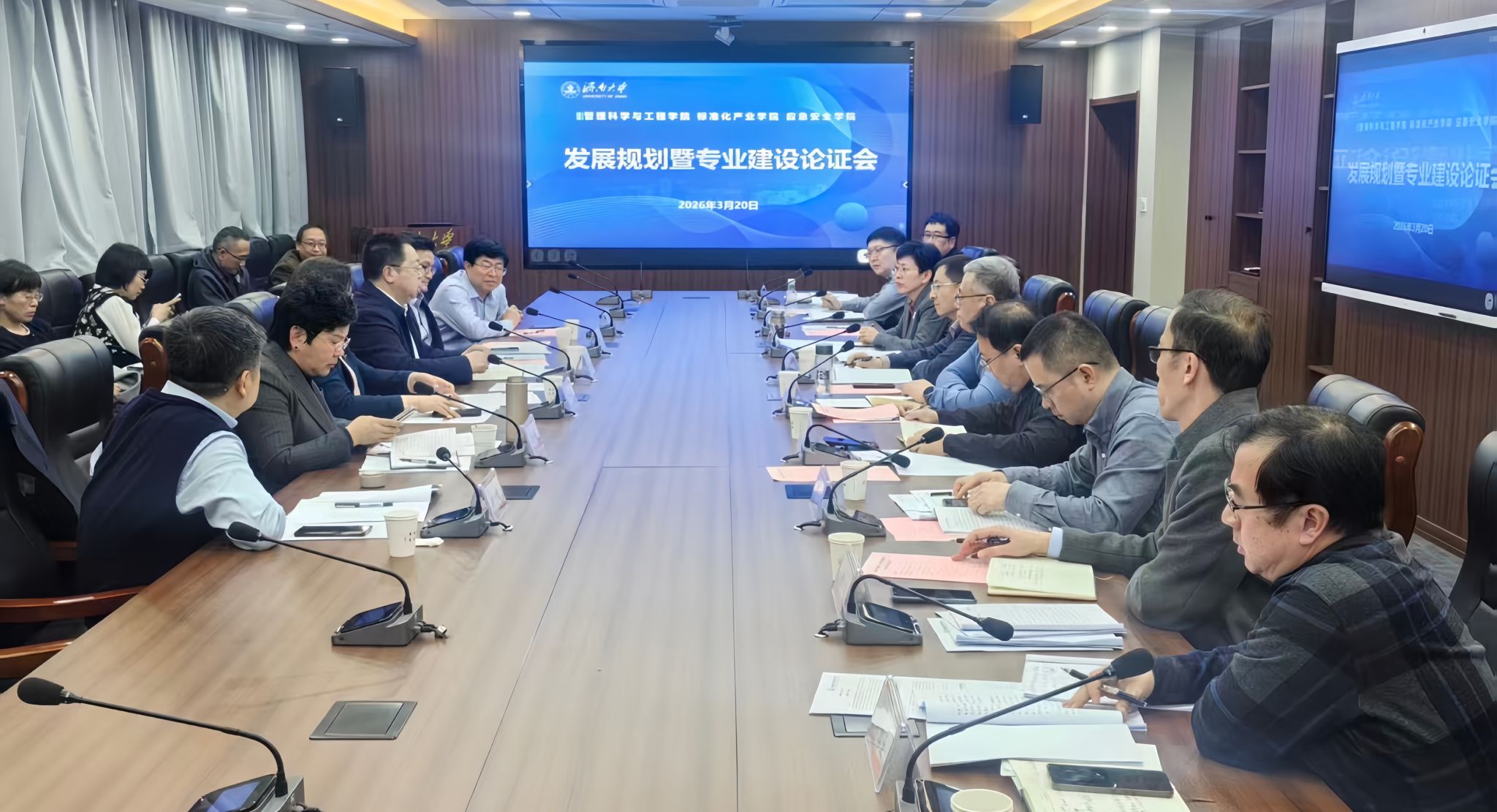 为进一步优化专业布局、明晰学院发展方向、完善人才培养体系,3月20日下午,管理科学与工程学院“十五五”发展规划暨专业建设论证会召开。济南大学原校长、山东协和学院党委书记刘宗明,北京信息科技大学党委常委、副校长王兴芬,泰山学院党委委员、副校长张守凤,山东财经大学管理科学与工程学院院长刘位龙,齐鲁工业大学经管学部部长李晔,山东省智库决策咨询专家、山东省委决策咨询委员会专家葛金田等专家教授应邀莅临指导,学校党委常委、副校长黄加栋出席会议。学校教务处、发展规划与学科建设处等职能部门相关负责人,学院领导班子成员及教师代表参加会议。会议由管理科学与工程学院党委书记王勇主持。