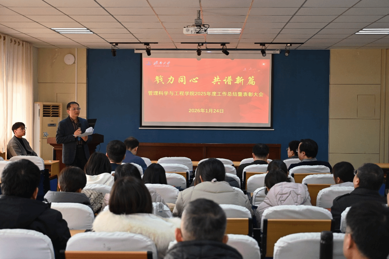 岁序更替,华章日新。为全面回顾年度工作成效,总结经验、表彰先进,部署新一年发展任务,1月24日下午,管理科学与工程学院组织召开2025年度总结暨表彰大会。学院领导班子成员、全体教职工参加,会议由学院党委书记王勇主持。