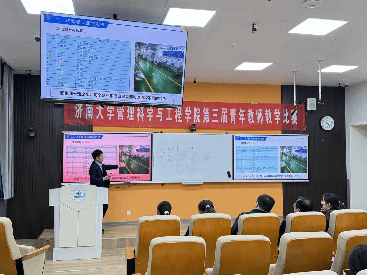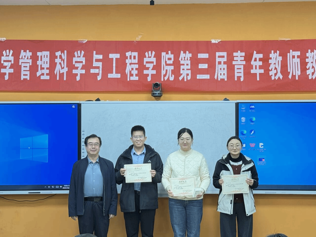 2025年10月24日下午,管理科学与工程学院于D1教学楼成功举办第三届青年教师教学比赛,比赛由院长助理常相全主持,学院11名青年老师现场参加比赛,学院院长王悦出席并讲话,学院教学指导委员会委员、曾获青教赛一等奖教师及部分系主任作为现场评委参与。